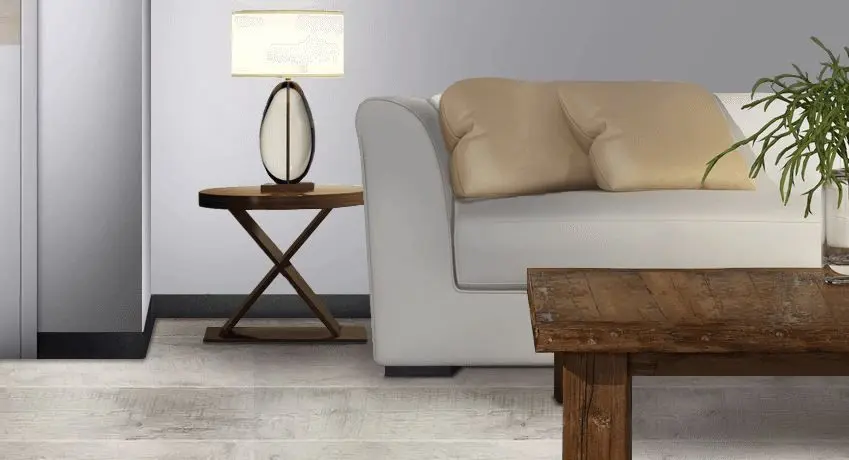 - Установите плинтус. Плинтус крепится к стене при помощи специальных креплений или же саморезов / жидких гвоздей. Не прижимайте плинтус или дверные коробки плотно к полу.